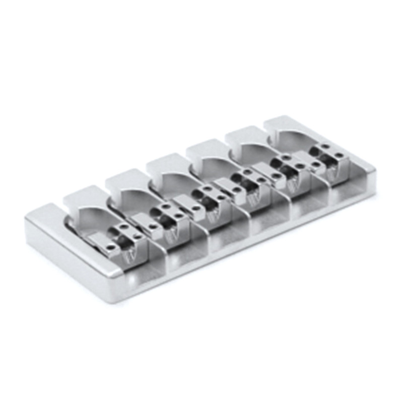 The elegant solution for any string spacings and numbers of strings for your special bass. Housing made of zinc, brass saddles. Dimensions 60mm x 15.4mm, string spacing at the bridge min. 15.5mm, lowest possible action above body top 9.5mm. Incl. screws and allen key. - Sold individually!