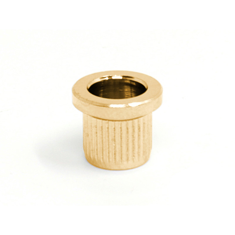 Genuine Fender® string ferrules. Made for Fender®. Package of four plated steel string ferrules used on most Fender® basses with strings-thru-body design. Diameter: .519" internal, .62" external. Approximately .55" tall. Fits American Deluxe, American Standard, and American Series (USA) strings-thru-body basses manufactured from 1998-Present.
