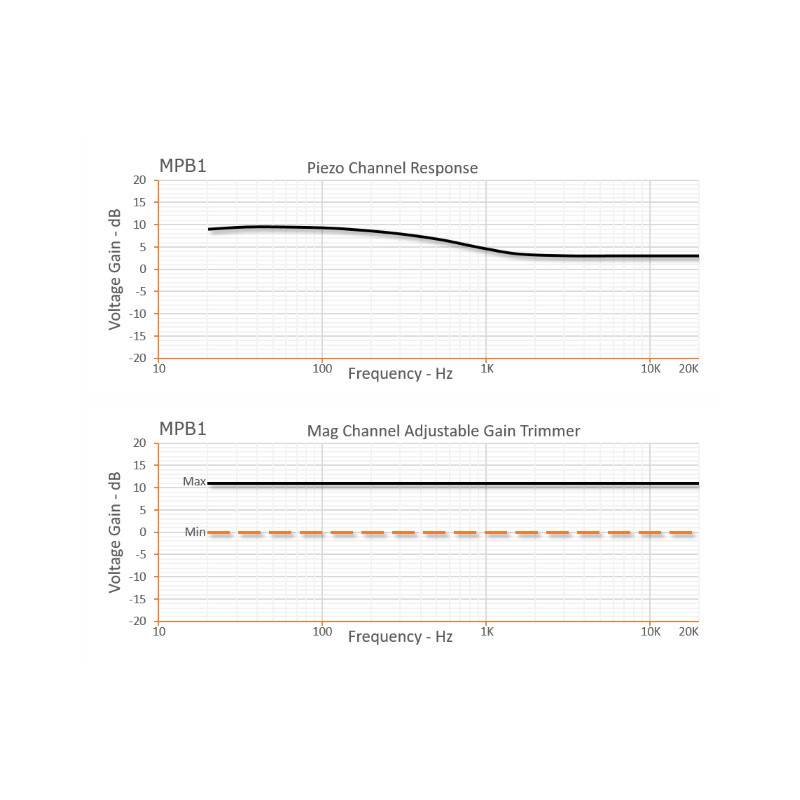 Buffer, Adjustable Gain, Dual Channel - 1 Magnetic, 1 Piezo with flat response, 9 or 18V with Active Blend Pot The MPB2-918 is a dual channel buffer preamp. One channel has a high impedance input for use with a piezo or microphonic transducer. The other channel provides isolation and boost for magnetic pickups and features adjustable gain allowing you to...