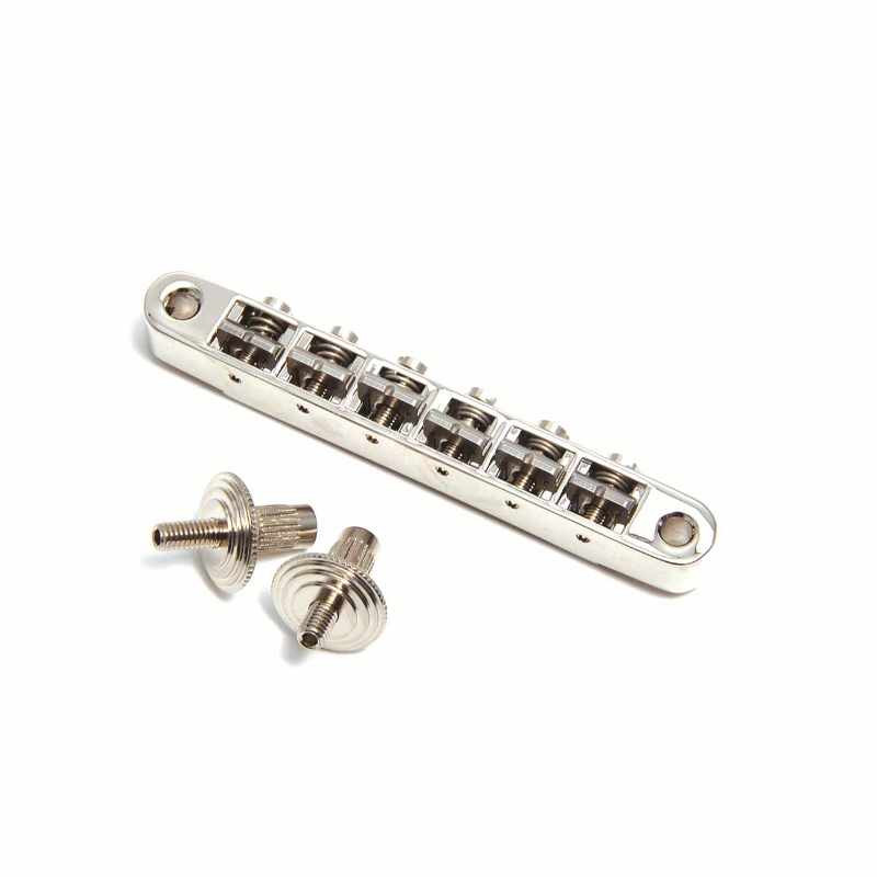 GOTOH® GE103B-T TUNE-O-MATIC BRIDGE 6mm METRIC POSTS NICKEL -Strings Spacing : 52mm (10.4 x 5) -Saddle Material : Hard Zinc -Posts Spacing : 74mm -Posts Thread : M8 -Radius : R300