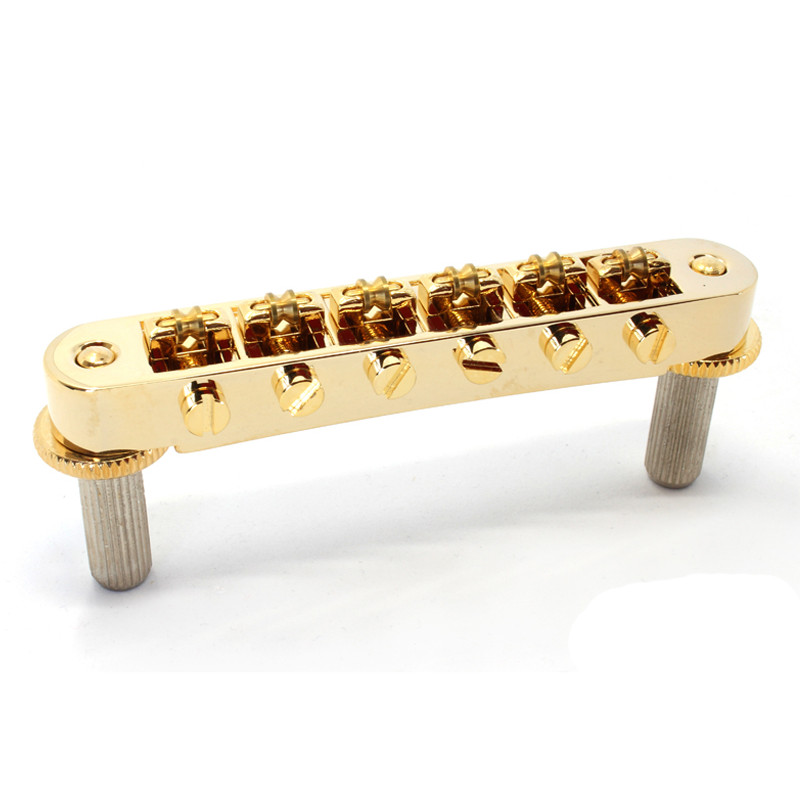 GOTOH® GE103B-T TUNE-O-MATIC BRIDGE 6mm METRIC POSTS COSMO GOLD -Strings Spacing : 52mm (10.4 x 5) -Saddle Material : Hard Zinc -Posts Spacing : 74mm -Posts Thread : M8 -Radius : R300