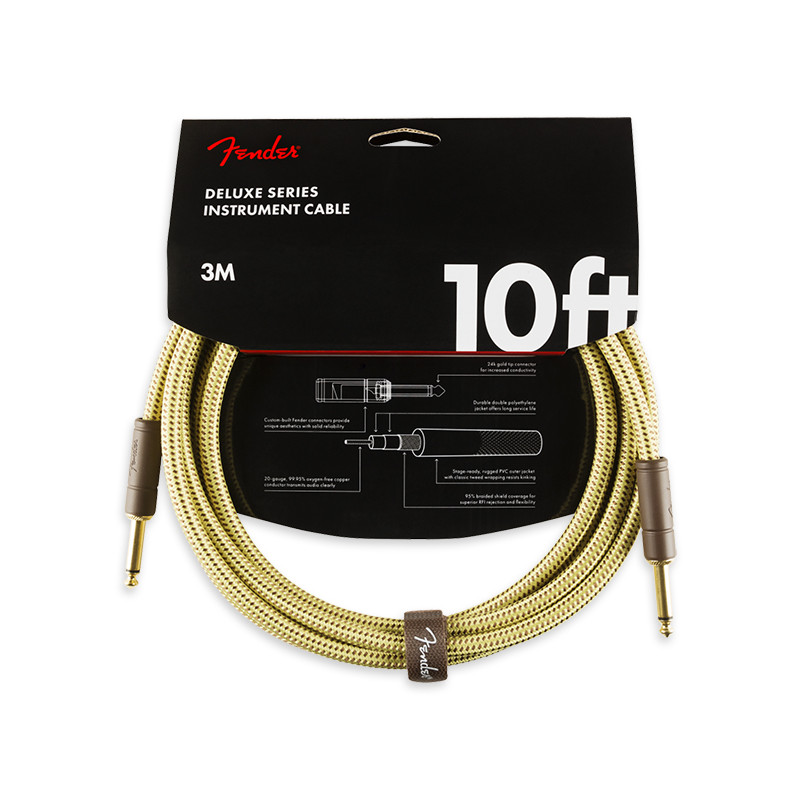 Fender Deluxe Series cables carry the highest quality materials and braided shielding to deliver flagship durability, conductance and transparency. Our top-of-the-line cables sport custom molded ends with strain relief under the housing—plus 24K gold-plated connectors that won’t tarnish or degrade your sound over time. These cables use a very quiet...