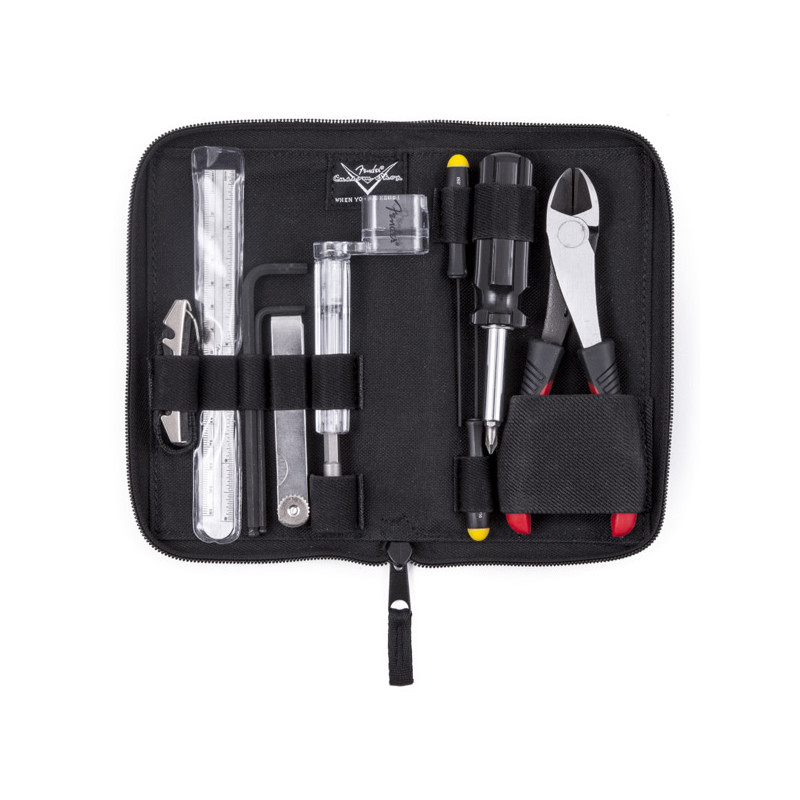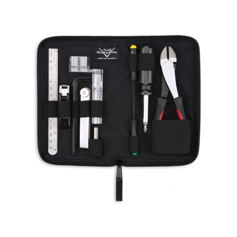 Every musician needs a basic tool kit for setting up and adjusting acoustic and electric guitars and basses. The Fender® Custom Shop Tool Kit by CruzTools® makes it simple with a convenient collection of the most essential and commonly used tools—specifically designed for Fender musical instruments. This kit contains all the basics for most minor adjustments, including a 4-in-1 screwdriver, hex wrenches, ruler, diagonal cutter, capo, feeler gauges and guitar string winder. These are the same high-quality setup tools used by the pros, and everything is stored in a convenient polyester storage pouch that fits easily in your case or gig bag. Hand tools come with limited lifetime warranty. Included: - Heavy-duty 4-in-1 screwdriver (#1 Philips, #2 Philips, ¼” slotted, 2.5mm slotted) - 1/2" Nut driver socket - (deep) - 2 Hex (Allen) wrenches (1/8” ball end, 3/16” ball end) - 2 Hex drivers (.050", 1/16") - 15-blade feeler gauge set - 6” steel ruler (metric/standard) - 6.25” diagonal string cutter - Strap style capo - Guitar string winder - Setup guide (on back of ruler) - Zippered storage pouch