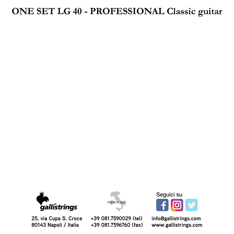 GALLI STRINGS® CLASSIC NORMAL TENSION lA GALLI strings are an Italian product of the highest quality mono-filament Crystal nylon for the trebles andSilver Plated copper wound on a multifilament core for the bass.Homogeneous, powerful and penetrating sound; perfect calibration and intonation, as well as rapid tuning stabilizationMaximum instrumental and...