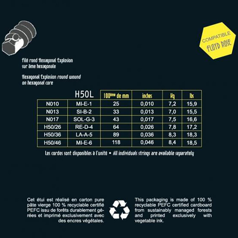 Depuis 2017, la gamme Hexagonal Explosion s’est rapidement imposée sur le marché. La qualité de fabrication offre un son plus rond, un confort, une justesse et une attaque d’une grande tenue tout au long de vos concerts et de vos séances studio. Les cordes Hexagonal Explosion sont filées en métal et plaquées nickel sur une âme hexagonale. Parfaitement...