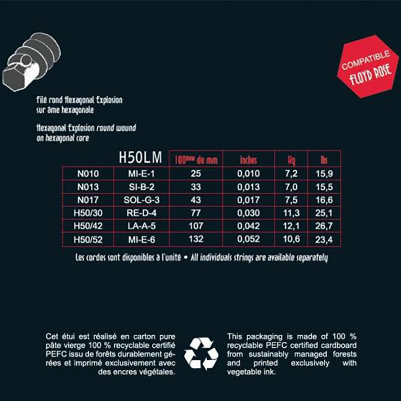 Depuis 2017, la gamme Hexagonal Explosion s’est rapidement imposée sur le marché. La qualité de fabrication offre un son plus rond, un confort, une justesse et une attaque d’une grande tenue tout au long de vos concerts et de vos séances studio. Les cordes Hexagonal Explosion sont filées en métal et plaquées nickel sur une âme hexagonale. Parfaitement...