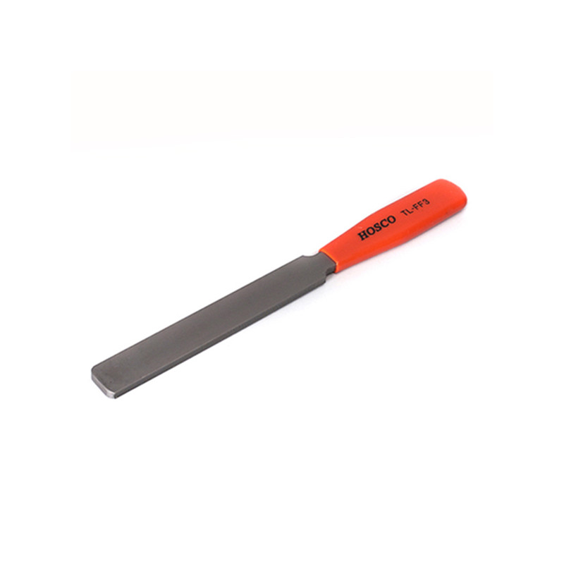 HOSCO® COMPACT FRET CROWN FILE WITH COARSE AND FINE CUTS FOR SMALL FRETS (1mm) -File size : 100 x 20 x 4mm (without silicone rubber grip) -Embossed triangle marks shows coarse-cut and fine-cut sides -Blue silicon rubber grip
