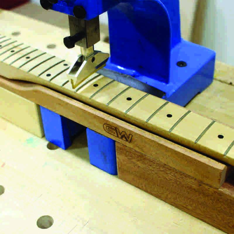 SUMMIT® Fret setter for 3.2 jumbo fret wire. Made from brass, special design with cutaway to prevent string damage when sliding and hammering on frets.