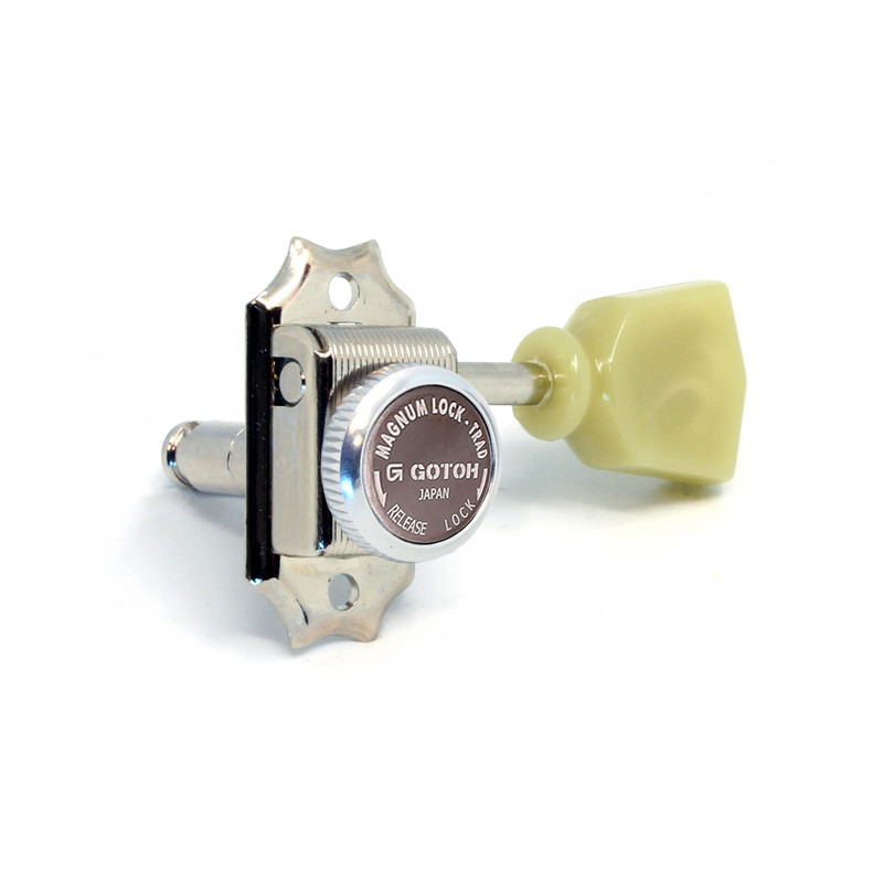 GOTOH® SG381 MG-T LOCKING MACHINE HEADS 3+3 RATIO 1:16 CHROME -Gear Ratio : 1:16 -Drill hole : 10mm