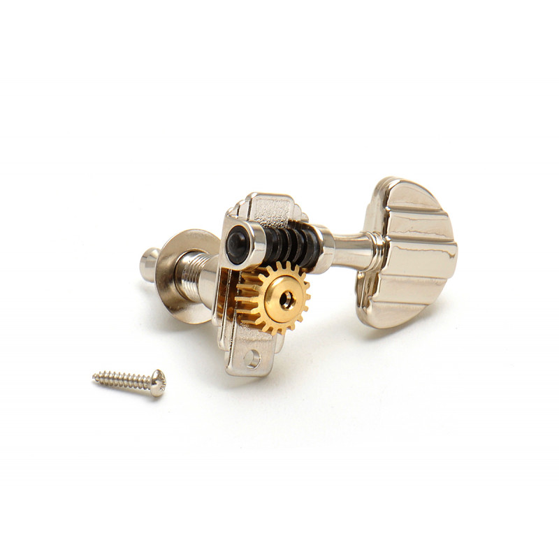 The original Roundbacks from Kluson! "Roundbacks" are closed type, maintenance-free tuners for modern 10mm pegholes. The special 18:1 gear-ratio allows for extremely smooth and precise tuning. Lowest tolerances and best manufacturing technology make the Kluson "Roundbacks" the perfect standard for modern tuning machines. for 3+3 headstocks Kluson...