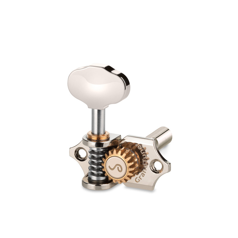 The original Roundbacks from Kluson! "Roundbacks" are closed type, maintenance-free tuners for modern 10mm pegholes. The special 18:1 gear-ratio allows for extremely smooth and precise tuning. Lowest tolerances and best manufacturing technology make the Kluson "Roundbacks" the perfect standard for modern tuning machines. for 3+3 headstocks Kluson...