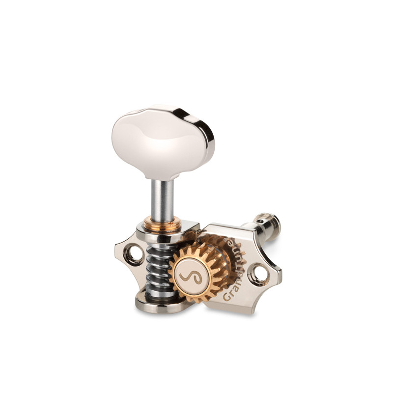The original Roundbacks from Kluson! "Roundbacks" are closed type, maintenance-free tuners for modern 10mm pegholes. The special 18:1 gear-ratio allows for extremely smooth and precise tuning. Lowest tolerances and best manufacturing technology make the Kluson "Roundbacks" the perfect standard for modern tuning machines. for 3+3 headstocks Kluson...