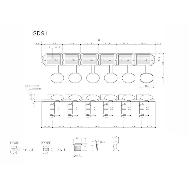 The original Roundbacks from Kluson! "Roundbacks" are closed type, maintenance-free tuners for modern 10mm pegholes. The special 18:1 gear-ratio allows for extremely smooth and precise tuning. Lowest tolerances and best manufacturing technology make the Kluson "Roundbacks" the perfect standard for modern tuning machines. for 6-left headstocks Oval Buttons...