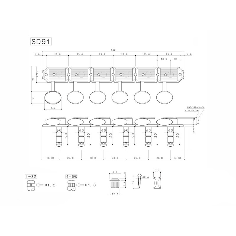 The original Roundbacks from Kluson! "Roundbacks" are closed type, maintenance-free tuners for modern 10mm pegholes. The special 18:1 gear-ratio allows for extremely smooth and precise tuning. Lowest tolerances and best manufacturing technology make the Kluson "Roundbacks" the perfect standard for modern tuning machines. for 6-left headstocks Oval Buttons...