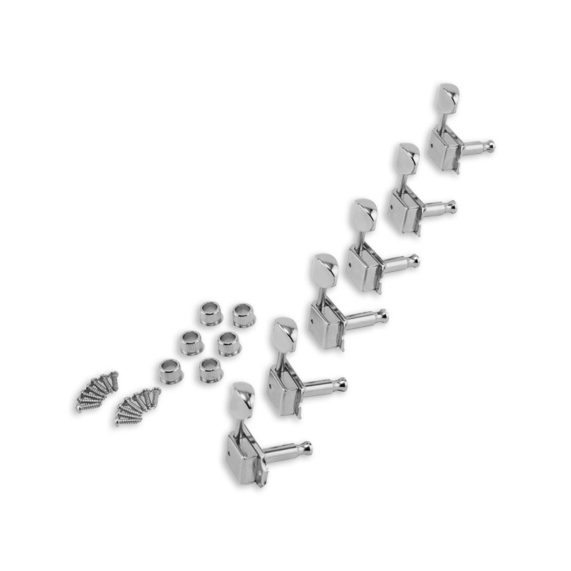 The original Roundbacks from Kluson! "Roundbacks" are closed type, maintenance-free tuners for modern 10mm pegholes. The special 18:1 gear-ratio allows for extremely smooth and precise tuning. Lowest tolerances and best manufacturing technology make the Kluson "Roundbacks" the perfect standard for modern tuning machines. for 6-left headstocks Oval Buttons...