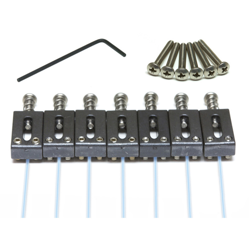 The PN-8001-00 is a set of six ghost loaded saddles with a offset intonation screw. They are designed to work with any of our ghost preamp kits. They will fit any Stratocaster or Telecaster style guitar with a string spacing of 2 1/16th. Each set of saddles come with a set of longer intonation screws for use with modern style Telecaster style guitars.