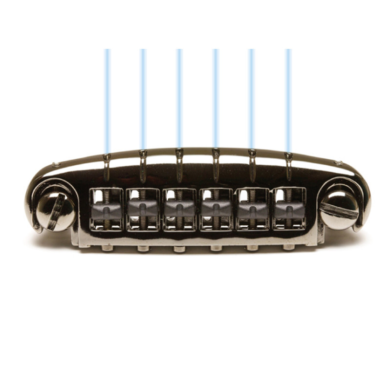The PN-8001-00 is a set of six ghost loaded saddles with a offset intonation screw. They are designed to work with any of our ghost preamp kits. They will fit any Stratocaster or Telecaster style guitar with a string spacing of 2 1/16th. Each set of saddles come with a set of longer intonation screws for use with modern style Telecaster style guitars.