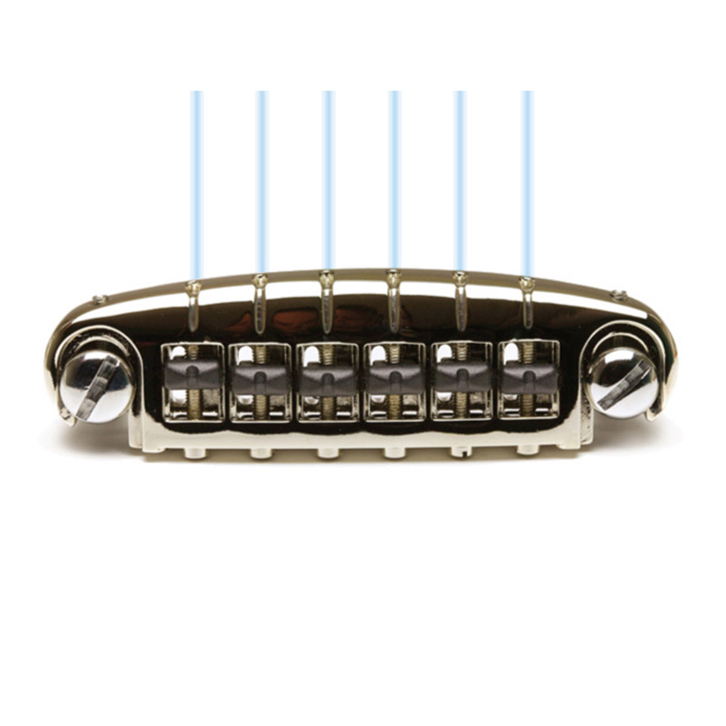 The PN-8001-00 is a set of six ghost loaded saddles with a offset intonation screw. They are designed to work with any of our ghost preamp kits. They will fit any Stratocaster or Telecaster style guitar with a string spacing of 2 1/16th. Each set of saddles come with a set of longer intonation screws for use with modern style Telecaster style guitars.