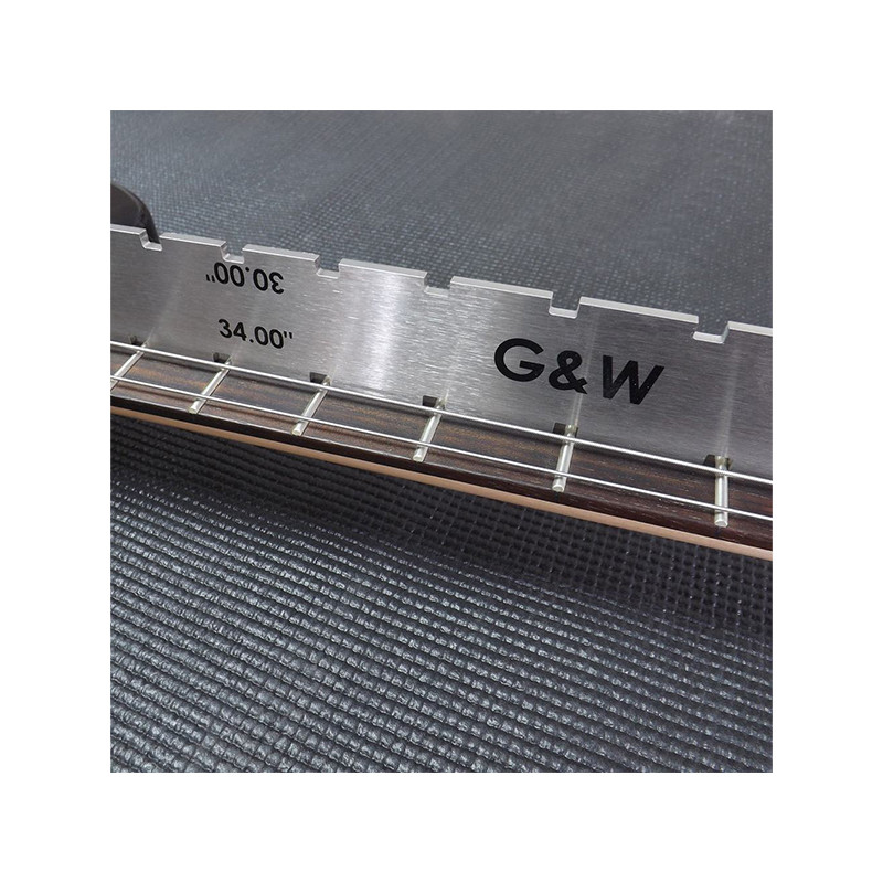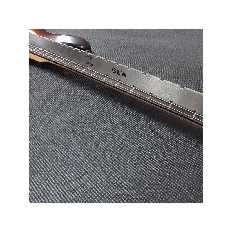 Technical data -Stainless steel 1,5mm thick - Dim100x52x1,5mm. Advantages - Two in one: high fret detector + action gauge - Handy reference: actions for electric, classical, acoustic and bass guitars - Hole for easy storage.