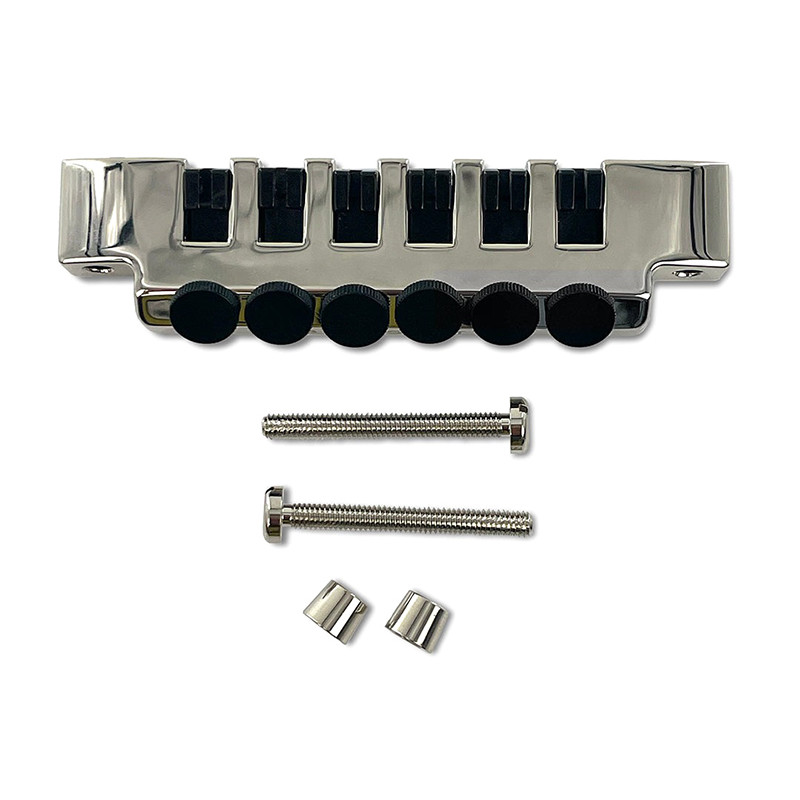 Made for Fender® instruments in a variety of vintage and contemporary models. Chrome-plated bridge assembly includes six vintage-style single-grooved barrel saddles, six intonation screws and springs, and two mounting posts with adjustable allen screws. Does not include "thimble" posts that fit into guitar body. Bridge posts are approximately 2-7/8" apart...