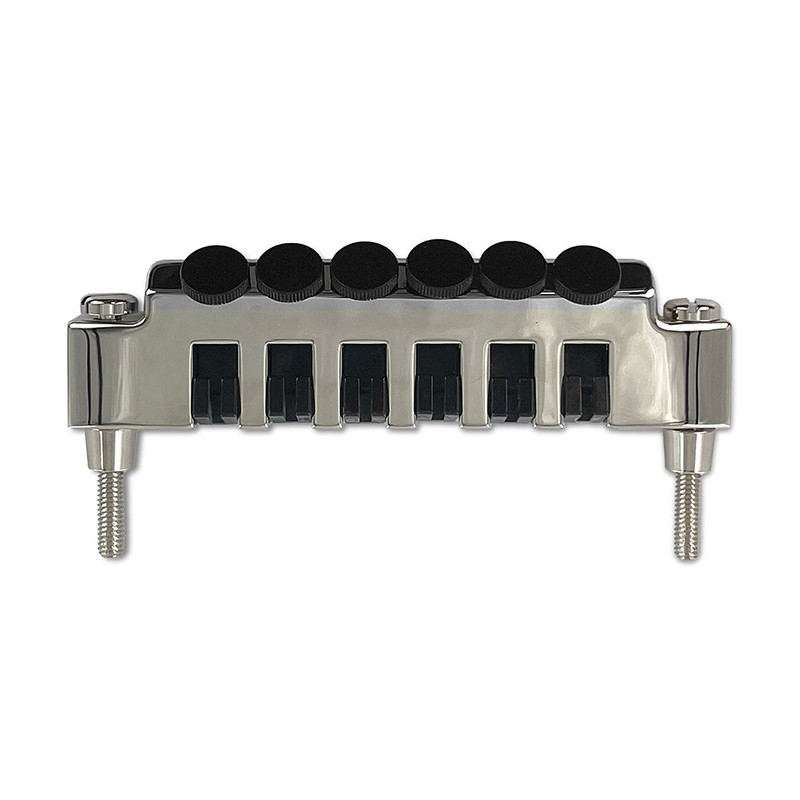 ROLLER BRIDGE MOSRITE® STYLE NICKEL -String Spacing : 10.3mm* -Radius : 10" (254mm) -Material : Brass -Studs Spacing : 73.5mm -Studs Thread : M5 -Studs External Diameter : 8mm