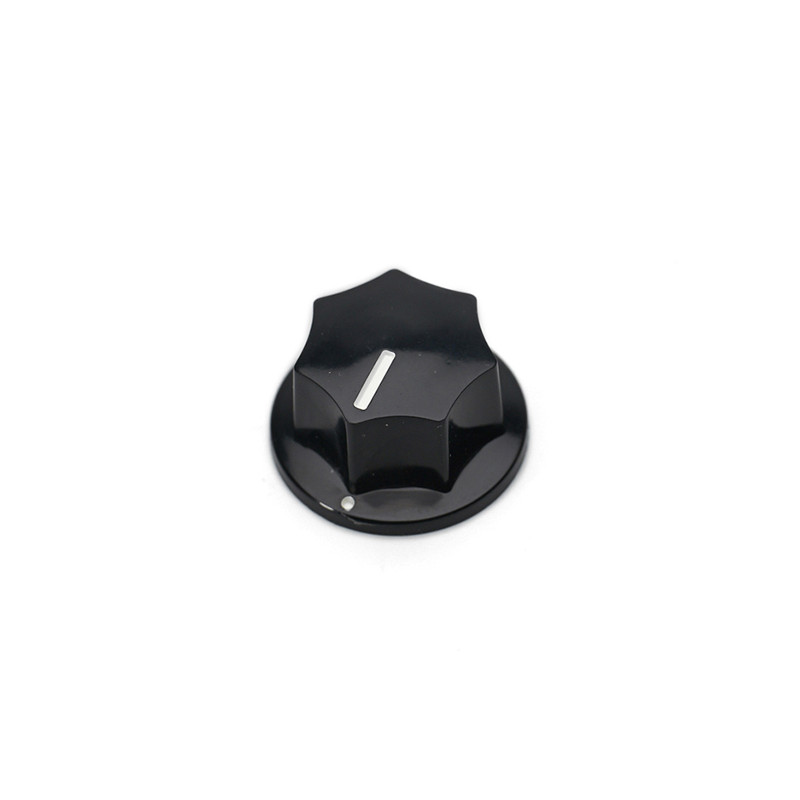 Need to replace a missing knob? Fender® has what you need straight from our U.S.-made instruments. Black plastic knob with white indicator line. Set screw mount. Designed to fit 1/4" solid shaft potentiometers. Upper knob for stacked control pot. Does not include mounting set screw or lower knob. Fits American Deluxe (US) and Deluxe Series (Mexico) Jazz...