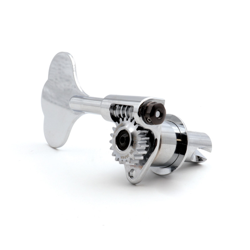 GOTOH® GB350 RES-O-LITE SERIES MACHINE HEAD FOR BASS LIGHTWEIGHT 1:20 RIGHT SIDE CHROME (1pc) -Weight : 40g/pc -Aluminium Shaft, Worm and Gear -Plastic Button (Plated) -Gear Ratio : 1:20
