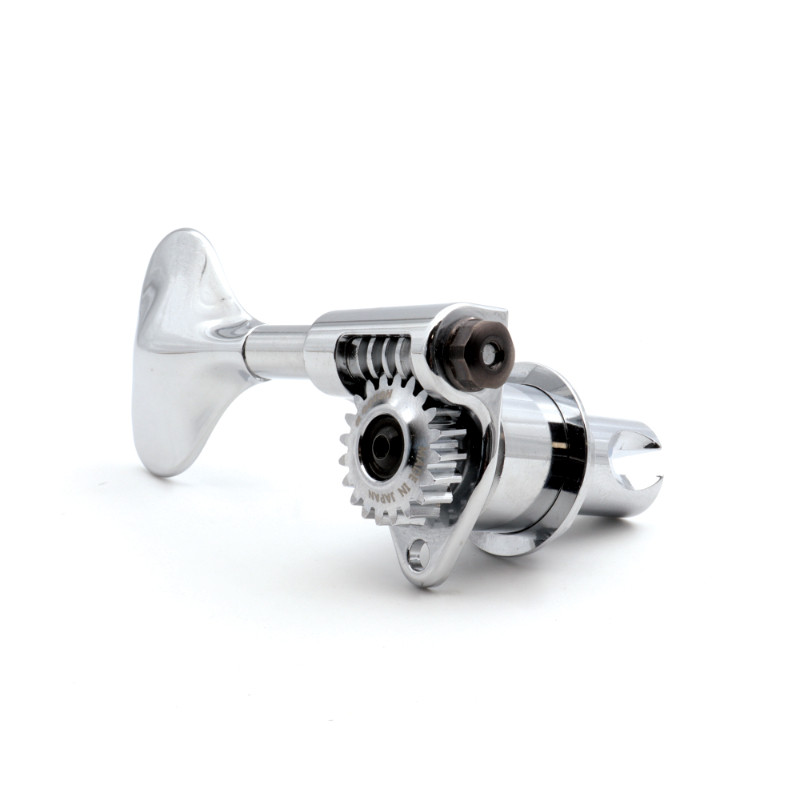 GOTOH® GB350 RES-O-LITE SERIES MACHINE HEAD FOR BASS LIGHTWEIGHT 1:20 LEFT SIDE CHROME (1pc) -Weight : 40g/pc -Aluminium Shaft, Worm and Gear -Plastic Button (Plated) -Gear Ratio : 1:20