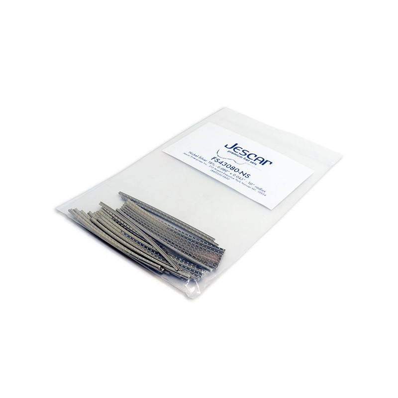 JESCAR® FRETWIRE 18% NICKEL SILVER 2.28 X 1.40mm (25 PCS SET / 10" RADIUS) The classic 6105 as used by Gibson and Fender over the years. Tall/narrow electric guitar wire. Sets are packed into bags containing 25 straight-cut 2.75? / 7 cm pieces pre-radiused to 10?.