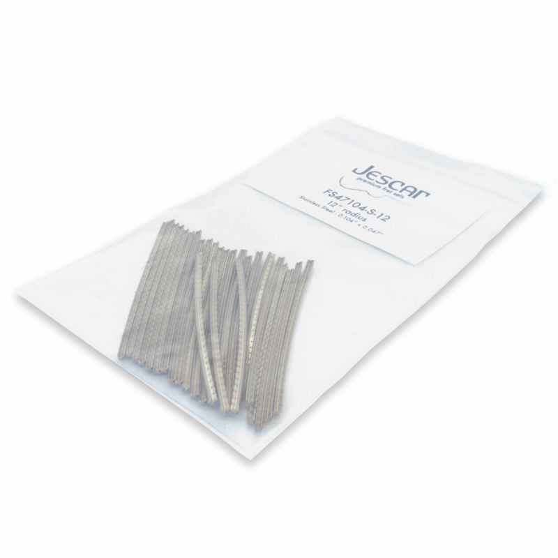 JESCAR® FRETWIRE STAINLESS STEEL 2.64 X 1.19mm (25 PCS SET / 10" RADIUS) For over 20 years one of the most popular frets for guitars and basses. As used by PRS, Ernie Ball, and many others. Sets are packed into bags containing 25 straight-cut 2.75? / 7 cm pieces pre-radiused to 10?.