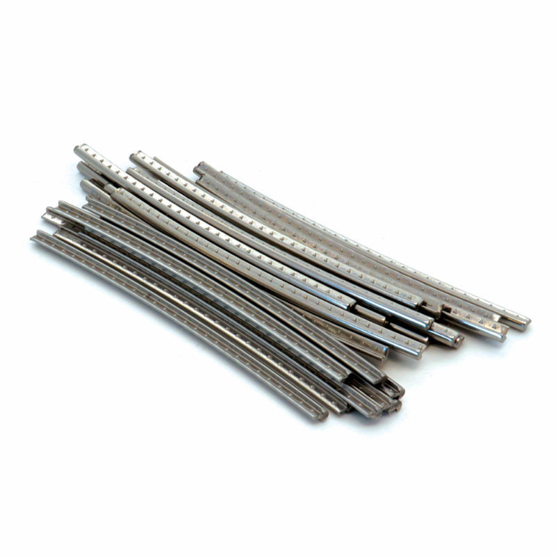 JESCAR® FRETWIRE 18% NICKEL SILVER 2.28 X 1.40mm (25 PCS SET / 10" RADIUS) The classic 6105 as used by Gibson and Fender over the years. Tall/narrow electric guitar wire. Sets are packed into bags containing 25 straight-cut 2.75? / 7 cm pieces pre-radiused to 10?.