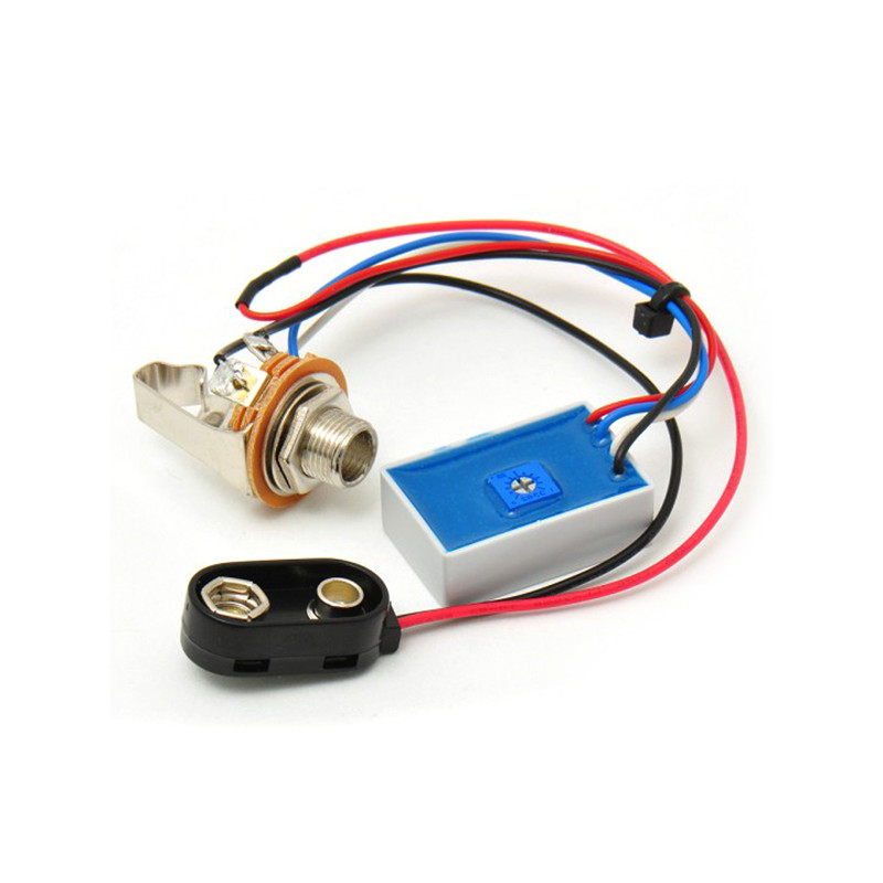 Active preamp +20db with trim pot for gain boost.