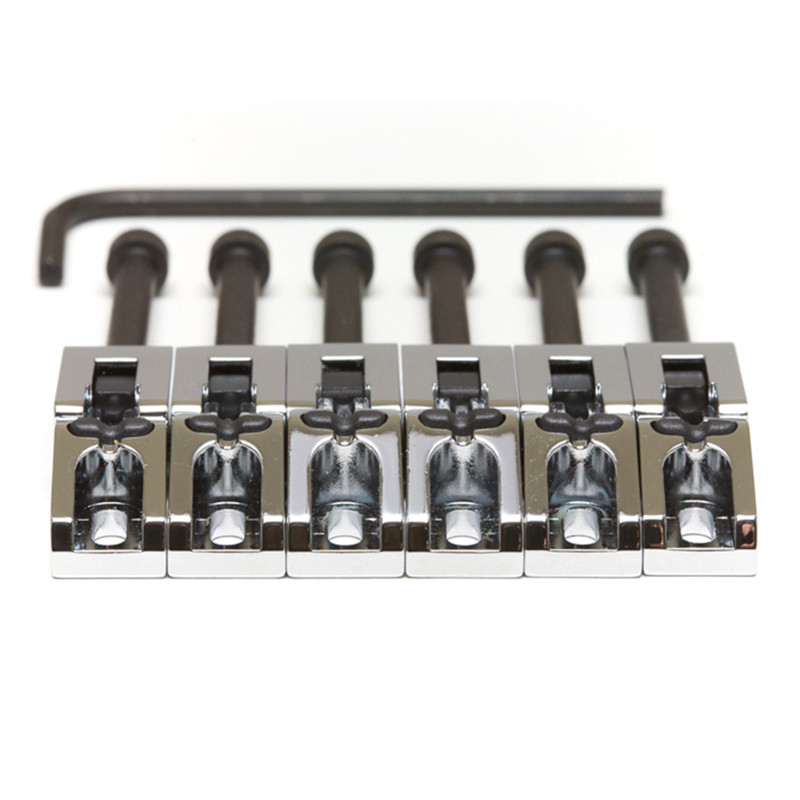 The PG0080-B6 is a set of six String Saver Classics for original style Floyd Rose bridges with an all black finish. They have a small String Saver insert in the saddle to dramatically reduce string breakage and improve tuning stability. They are a drop in replacement for any Floyd Rose style original bridge.