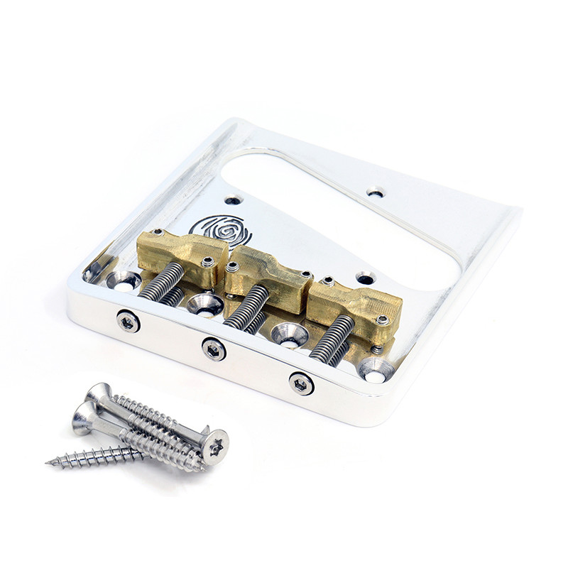 Originally released on the Hot Rod '52 Telecaster®, this high power bridge fits on a vintage 4-screw mount platform with the added bonus of intonatable saddles. Plated-steel bridge (non-serialized). Bridge plate is stamped "Fender Pat. Pend. 77038". Package includes three compensated intonatable vintage-style brass saddles, slot-head saddle height screws,...