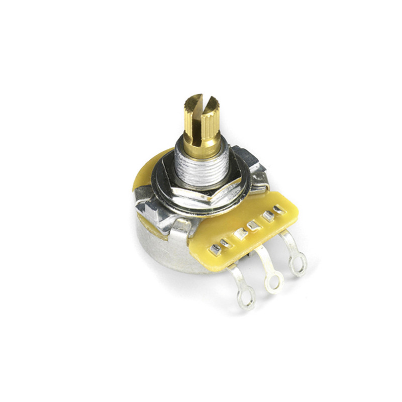 CTS® POTENTIOMETER SPLIT SHAFT 500K LINEAR - 24 Splines 6mm split shaft - Aluminum bushing and shaft - 15% Tolerance - Threaded shaft is 3/8" (9.52mm) in length and 3/8" (9.52mm) in diameter