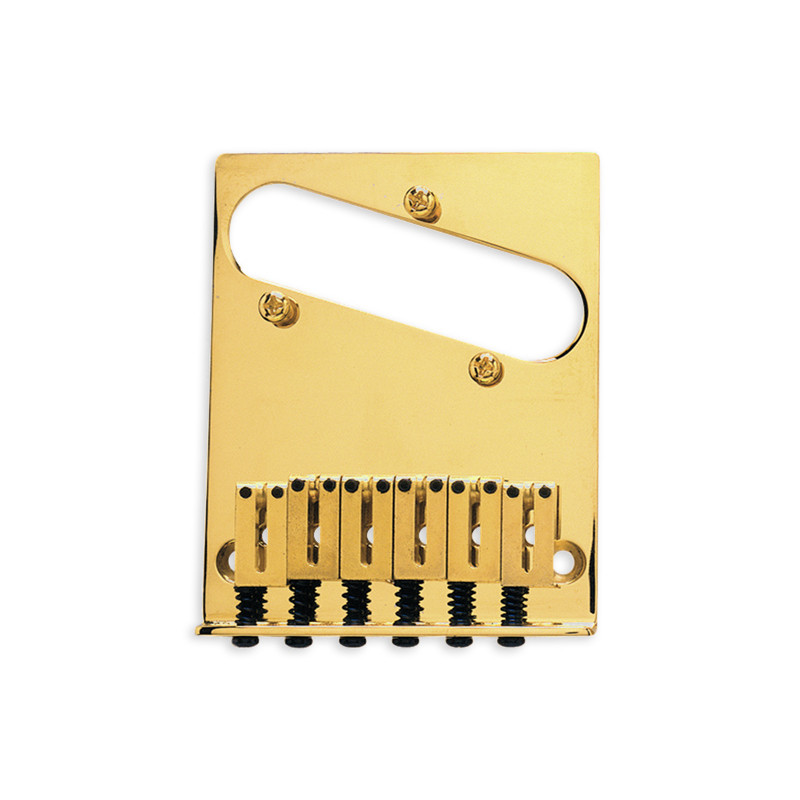 GOTOH® GTC-201 BRIDGE FOR TELE® BRASS SADDLES GOLD -Strings Spacing : 54mm (10.8 x 5) -Saddle Material : Brass -Mounting Screw Holes Spacing : 64.8mm (21.6 x 3)