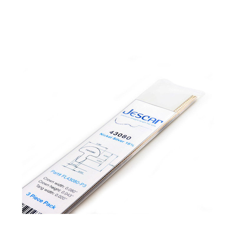 JESCAR® FRETWIRE STAINLESS STEEL 2.03 X 1.09mm (2' / 60cm STRAIGHT LENGTH) The same crown dimension as 43080 but with a wider and longer tang. Perfect for newer Taylor and Gibson acoustics.