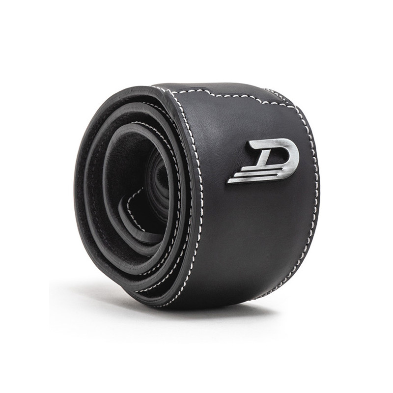 DUESENBERG 3-STEP STRAP STANDARD EXTRA LONG A high-quality leather strap with riveted metal D-Logo and an anti-slip suede inner surface. High-quality matte genuine leather Anti-slip suede inner surface metal D-Logo length adjustable Length: regular 137-186 cm