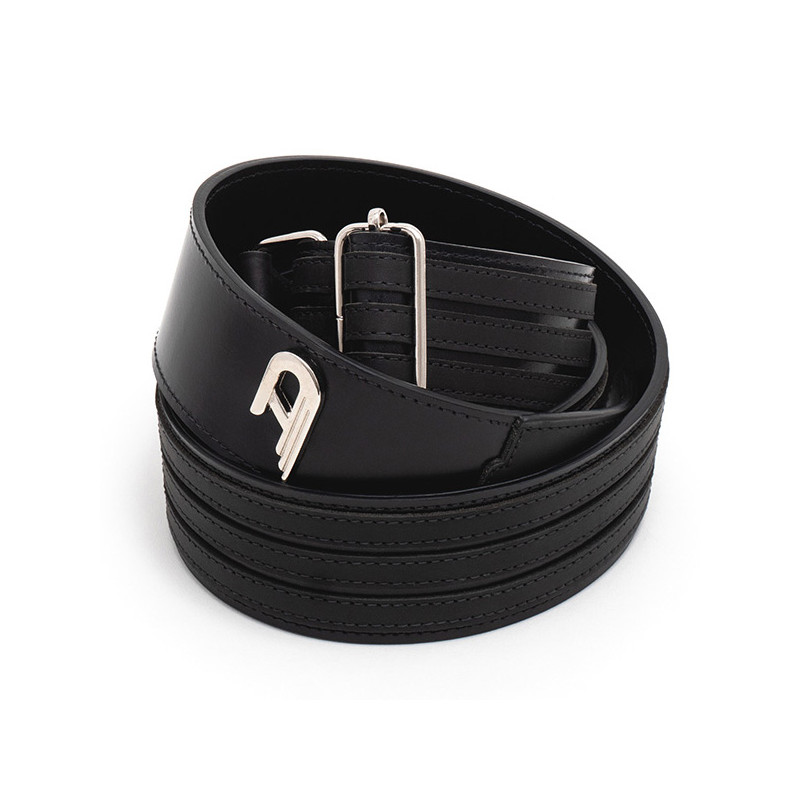 DUESENBERG 3-STEP CUSTOM BLACK A high quality thick leather strap with soft padding and custom aged appeal. High-quality genuine black dyed leather Soft padding white heavy-duty stitching Anti-slip suede inner surface Aged metal D-Logo Length adjustable (100-140cm)