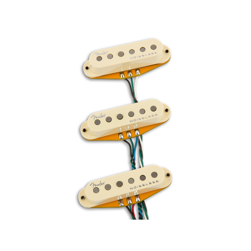 With the all-new Gen 4 Noiseless Stratocaster pickups we’ve achieved the sonic equivalent of cold fusion—authentic vintage-style Fender tone combined with noise-free performance. A quantum leap in pickup technology, these are the pinnacle of our pickup designs, offering crisp, clear cleans as well as gigantic overdriven tones that are bursting with pure rock power. Couleur White Dimensions 1.50x4.75x5.00 IN Poids 0.90 LB