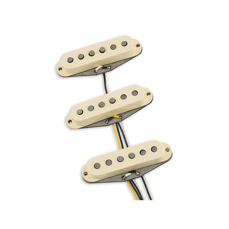 Le set Strat polyvalent, hybride à la formule originale mélangeant fil de cuivres et aimants différents. Le résultat est une position chevalet chaude et mordante sans excès, un micro manche rond dynamique, une position centrale aérée et des positions intermédiaires au grain sur-prononcé avec juste la dose piquante nécessaire. Pas de set typé Texas...