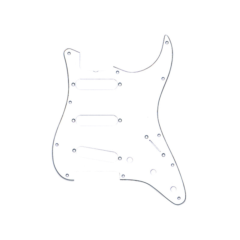 PICKGUARD FOR STRAT® HSS 11 HOLES 3-PLY WHITE -3 Ply : White / Black / White -Pot holes : 8.1mm for metric pots -Thickness : 2.28mm (.090")