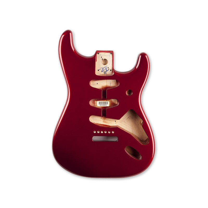 Genuine Fender Stratocaster® guitar alder body routed for a traditional SSS pickup configuration and pre-drilled with six screw holes for vintage-style bridge with wide 2-3/16" mounting. Durable gloss-polyester finish. Crafted at Fender’s Ensenada, Mexico, manufacturing facility. This replacement body is for a Fender or Squier® by Fender guitar. Specifications: Body Material: Alder Body Finish: Gloss Polyester Routing: SSS - No holes drilled for pickguard mounting Bridge Mount Design: Vintage-Style 6-Screw Synchronized Tremolo (2-3/16" Mount) Neck Pocket: 4-Bolt Mount Note: Bridge mounting spacing is pre-drilled to only accept the following replacement bridge assembly designs: Vintage-Style Strat® Bridge Assembly American Vintage Series Stratocaster® Bridge Assembly Highway One/American Special Stratocaster® Bridge Assembly Brass Stratocaster® Tremolo Assembly Dimensions 3.40x14.00x21.30 IN Poids 6.30 LB