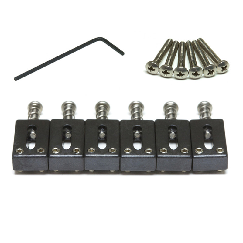 The PS-8001-00 is a perfect upgrade or replacement set of saddles for your Strat or Tele style guitar. They have an off set intonation screw and a 2 1/16th string spacing. Included with the set is a set of slightly longer intonation screws to be used for a Telecaster.