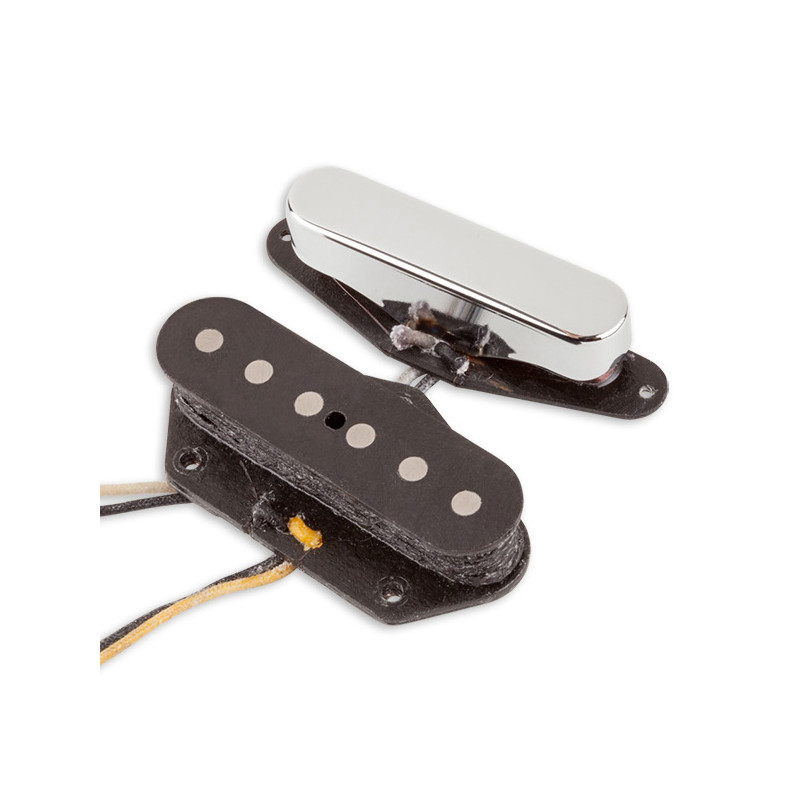 Broadcast : Micro chevalet Telecaster calqué sur les tout premiers modèles de Tele ! Très équilibré et ultra dynamique, architecturé autour d’aimants Alnico III , il propose le twang, le mordant, de jolis aigus, une expressivité au top, une résistance aux distorsions, un joli son clair . Peu puissant, il peut être collé aux cordes pour booster le niveau...