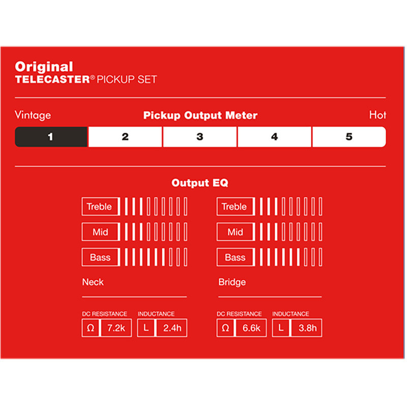 Broadcast : Micro chevalet Telecaster calqué sur les tout premiers modèles de Tele ! Très équilibré et ultra dynamique, architecturé autour d’aimants Alnico III , il propose le twang, le mordant, de jolis aigus, une expressivité au top, une résistance aux distorsions, un joli son clair . Peu puissant, il peut être collé aux cordes pour booster le niveau...