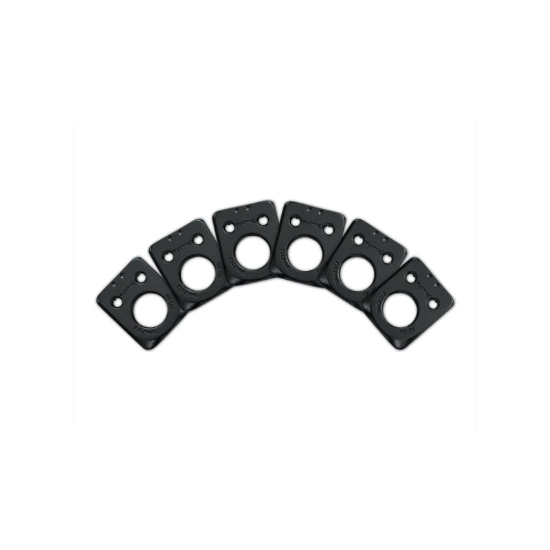 The PRT-952-201 is a set of 6 Ratio InvisoMatch Premium Installation Plates, designed for easy installation of Ratio Tuned Machine Heads. Match the correct plates to the current machine head screw position on your guitar. Use your guitars existing mounting holes for a fast, perfect Ratio Installation. It has the modern Fender Style two pin mounting system...