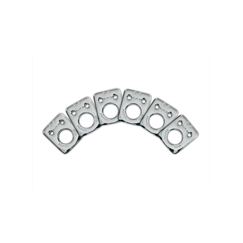 The PRT-952-214 is a set of 6 Ratio InvisoMatch Standard Installation Plates, designed for easy installation of Ratio Tuned Machine Heads. Match the correct plates to the current machine head screw position on your guitar. Use your guitars existing mounting screw holes for a fast, perfect Ratio Installation. It has a 45 degree screw hole mount.