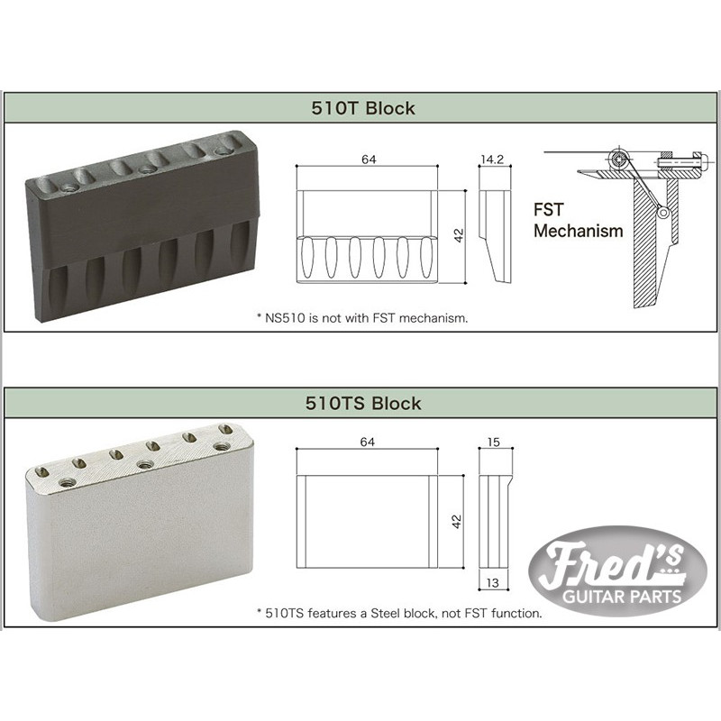 GOTOH® 510T-FE1 TREMOLO 2 STUDS TYPE STEEL SADDLE 10.8mm STRING SPACING WITH FST BLOCK BLACK -Block : 42mm FST Mechanism -String Spacing : 10.8mm -Saddle Material : Steel -Suitable Arm : A7 37mm block available on special order. Ask for delay