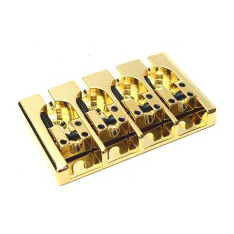 SANDBERG® BASS BRIDGE 4 STRINGS GOLD -Original Bridge for 4-String Basses from Sandberg -Stringspacing individually adjustable from 18.5 to 20 mm -Offers the greatest possible Adjustment-Options using grub Screws with regard to intonation, string position and string spacing -Color: Gold -Including Screws, Sandberg Cleaning-Cloth and Operating Instructions